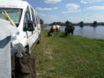 26 Giugno – Partiamo da Tinskoy, Qui la mattina mentre ci riforniamo d’acqua e laviamo della biancheria, si avvicina un uomo Alessandro e quando Alina gli dice di essere Ucraina, iniziano a parlare in ucraino e le dice di essere cittadino russo di origine ucraina. I genitori erano stati obbligati a trasferirsi in questo paese dai sovietici durante lo stalinismo. Ha chiesto ad Alina come si vive in Ucraina dove lui ha già una sorella.