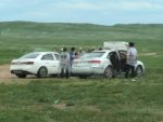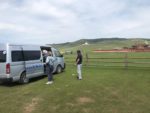 1 Luglio – Usciamo dalla Repubblica di Buriazia, Russia. La mattina prima di entrare in Mongolia, vediamo un pulmino Uaz targato Russia, poco dopo arrivano tre giovani, Alina parla con loro. Hanno dormito nel vicino Hotel, che definiscono squallido.