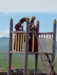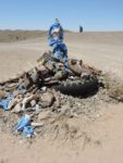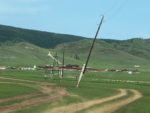 4 Luglio – Arriviamo a Dalanzadgad all’ora di pranzo, dove incontriamo la guida Doghi. Alina ha telefonato all’Agenzia che l’ha avvertito e ci è venuto a prendere dopo mangiato. Tommaso fa un tentativo con la guida per cercare un meccanico per il solito problema del suo Mercedes, senza successo. Fa un caldo infernale, ma approfitto per riparare il supporto dell’antenna CB. Tommaso va per primo fuori città a vedere la corsa dei cavalli del Naadam.