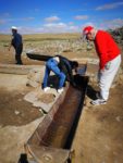 Le pratiche doganali con la polizia russa sono lunghe come al solito e si deve riconsegnare il documento del camper compilato all’ingresso. Chiudiamo i camper e saliamo negli uffici, come sempre si deve stare attenti ai locali frontalieri russi e mongoli indistintamente che, cercano in maniera quasi disinvolta di passarti avanti per fare meno fila. Ma Tommaso con la sua esperienza, come un “mastino napoletano” si piazza davanti ad uno sportello e non li fa passare. Mentre Alina cerca di capire parlando in russo qual’è la maniera più rapida per sbrigare la pratica. Finita questa operazione burocratica che dura circa 3/4 d’ora, scendiamo sul piazzale. Solito controllo del camper all’interno.Trovano il Telepass, e cercano di aprirlo ma Alina gli spiega a cosa serve, e il poliziotto desiste. Apriamo il cofano controllano il numero del telaio e finalmente riusciamo a passare dopo che hanno controllato anche sotto al mezzo. Mettono i vari timbri sui passaporti e sui loro documenti del camper, passiamo nella terra di nessuno ed entriamo in Mongolia.