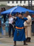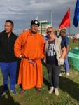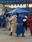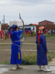 Si svolgono varie discipline: la corsa di piccoli cavalli, i fantini quasi toccano in terra con i piedi. Nel tiro con l’arco dove le più brave sono le donne, riescono a centrare il bersaglio a 80-100 metri. La lotta rimane una tradizione ancora diffusa. Più tardi entriamo nelle Gher messe a disposizione dagli sponsor. Beviamo latte di cavalla acida e mangiamo pasticcini e carne di pecora che sembra essiccata, lardo non so di quale animale e Té. Nel pomeriggio andiamo a visitare il Museo del Gobi Meridionale.