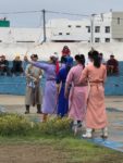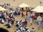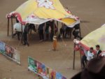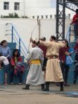 Così possiamo fotografare e riprendere con una certa tranquillità da vicino tutta la manifestazione. Cosa che non sarà possibile fare il giorno dopo durante la manifestazione ufficiale. Molto interessante l’esibizione dei giochi tradizionali: con la balestra, scacchi, dadi, e un gioco dove si tira un piccolo dado rettangolare, un’asticella dove scorre dandogli una schicchera con il dito medio e devi colpire a circa 4 m il bersaglio. Uscendo visiteremo le prime Gher sistemate sulla piazza.