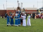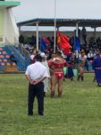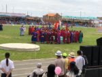 6 Luglio – Dalanzadgad Oggi dal mattino assistiamo alla manifestazione ufficiale del Naadam. Prima c’è la sfilata di tutti i gruppi partecipanti con le bandiere. Un po’ come accade da noi quando ci sono delle feste in costume.