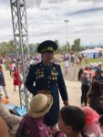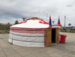 Ci siamo trasferiti in città di fronte al comando di polizia, dove c’è un bel parcheggio. Entriamo e Alina parla in russo con un responsabile chiedendogli se possiamo fermarci per una notte, ci concedono la sosta. Poi approfittiamo per andare a piedi a vedere un Naadam locale dove non incontriamo turisti.