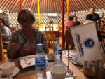 Passiamo per Bayanzag, dove è nato il nostro autista Yura, che ci fa conoscere sua sorella che gestisce un mini bazaar. È un paesino tipico mongolo dove pranziamo.