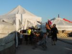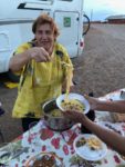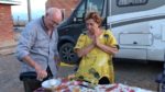 Purtroppo ad un certo punto si scatena una tempesta di sabbia, che gli rovina parte della festa. La sera la moglie di un poliziotto ci ha portato addirittura della carne e frittelle con cetrioli, noi gli abbiamo offerto del caffè.