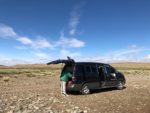 Passando tra queste montagne con piste accidentate, dove siamo costretti a scendere e percorrere qualche centinaio di metri a piedi, per il terreno impervio e non far strusciare sotto l’auto.