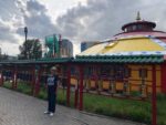 Arriviamo a Darkhan. Ci fermiamo a pranzo in alto vicino alla statua di un Buddha seduto, da dove c’è una bella vista di tutta la città. Entriamo nel centro commerciale Nomin e poi ci spostiamo in una piazza vicino a Zaluuchuud Avenue a 100 m dalla compagnia telefonica Tedy. La sera dormiremo qui a Darkhan.
