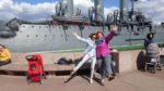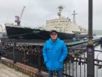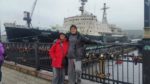 Abbiamo parcheggiato difronte alla nave rompighiaccio nucleare Lenin, così saliamo per visitarla, accompagnati da un ufficiale della marina.