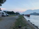 Aldilà del fiume, il centro storico della città. Si cena nei campers in uno scenario molto romantico, con vista sull’imponente scorrere del fiume, solcato da lunghissime chiatte che risalgono la corrente spinte da potenti rimorchiatori.