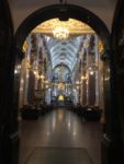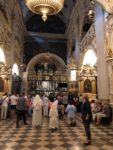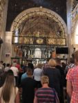 Ci sistemiamo nel grande parcheggio (5 €) gremito di auto e pullman e, a serata inoltrata, entriamo nella affollatissima cappella.