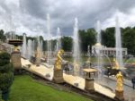 26 giugno. La mattinata si presenta soleggiata così andiamo a visitare il parco della villa Peterhof, dove lo zar Pietro il Grande, nei primi del 1700, si è fatto costruire una magnifica reggia che affaccia sul Golfo di Finlandia.